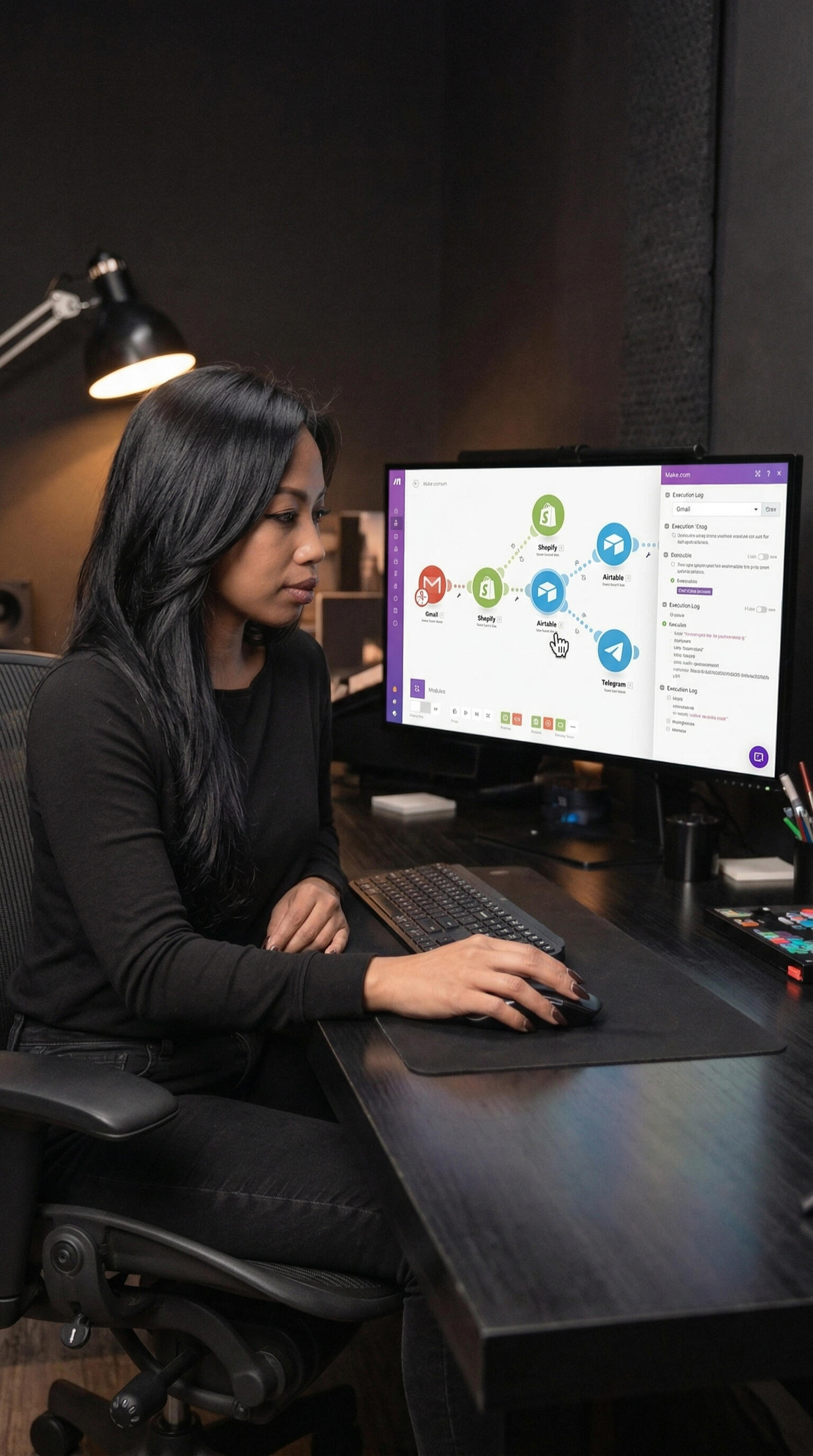 The blunt truth? Most business owners are drowning in manual tasks they should have automated years ago. While "business coaches" are selling you courses on mindset, your leads are walking out the door because you took 6 hours to respond.I'm not a coach. I'm an operator.For 14 years, I've been the person businesses call when their "growth" has turned into chaos. When their inbox is a graveyard of missed opportunities. When they're working 60-hour weeks just to stay afloat.Here's what I do: I build systems that work while you sleep. Not theory. Not frameworks. Actual automated workflows using Make.com that capture every lead, respond instantly, and turn prospects into paying clients without you lifting a finger.